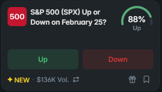 Similarly, another derivatives market is whether or not the S&P ends up on February 25th.